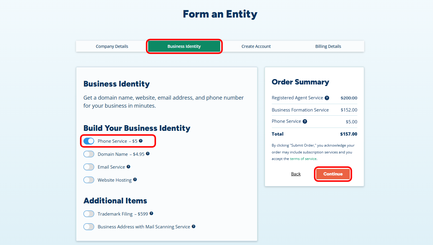 Why? A U.S. phone number is strongly recommended for opening U.S. business bank accounts like Mercury or Relay. It is often required for verification when using Stripe, Amazon, and other merchant platforms. Getting it here is cheaper and more reliable than many VoIP providers. - Optional: You can also add services like a Domain Name, Website Hosting, or Business Email to build instant professional credibility.
