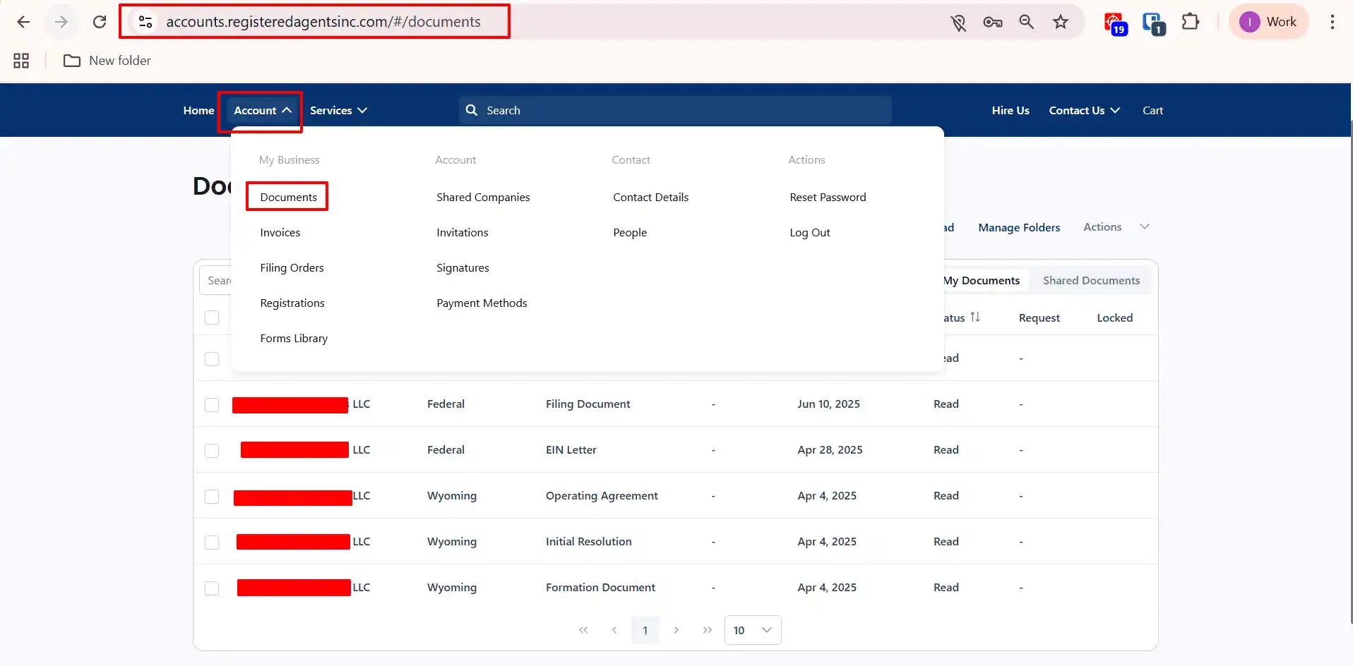 - Active Services: You will see your “Registered Agent Service” and “Formation” status.